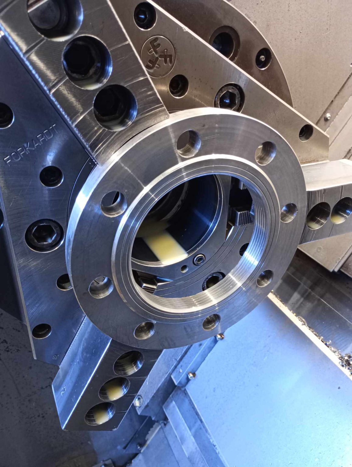 Ponúkame najmä CNC sústruženie a frézovanie. Vstupným materiálom sú najčastejšie oceľové tyče-kruhové, ktoré máme skladom v priemeroch od 20mm do 200mm v akosti 42Crmo4+QT. Obrábame tiež výpalky z plechov, odliatky, výkovky a zvarence.